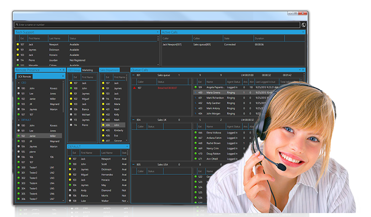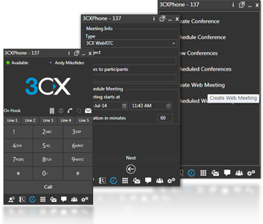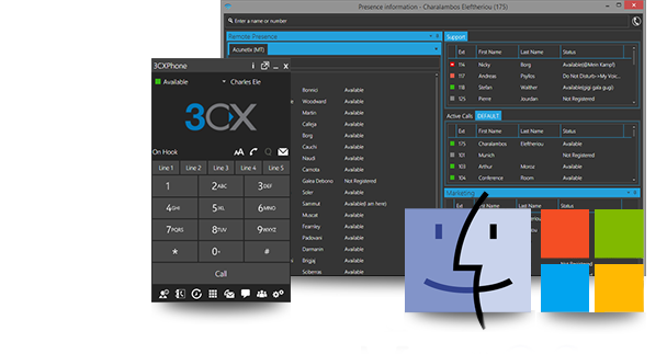 3CX Phone System integrates powerful clients for Mac and Windows, allowing you to easily manage your phone calls, whether in the office using CTI and your deskphone, or on the road using the inbuilt softphone. Unlike other PBXs, no additional license fees are charged – and because 3CXPhone is fully integrated its easy to deploy and manage for the administrator, and easy to use for the employees.