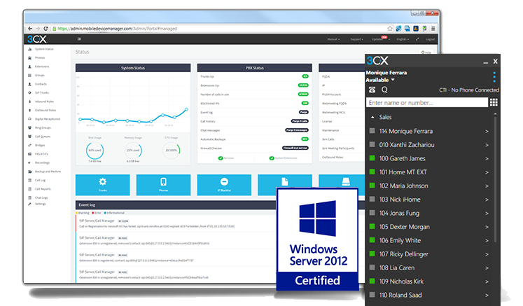 3CX Phone System sets itself apart from the competition with its easy installation and management. Setup takes minutes and 3CX Phone System will run on an existing Windows machine (not necessarily dedicated) or virtualized in a Hyper-V or VMware instance.